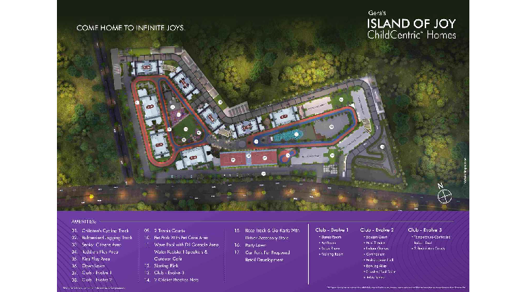 Gera’s Island of Joy at East Kharadi is a premium ChildCentric® residential development spread across 12.5 acres. The project features three exclusive clubhouses spanning over 40,000 sq. ft. and more than 4 acres of open green spaces, offering a vibrant lifestyle for families. Residents can enjoy unique recreational attractions including a private go-kart track, an elevated wave pool, and a modern bowling alley. Designed as part of an integrated township, the development comprises 9 impressive towers rising 30–32 storeys. With thoughtfully planned homes, world-class amenities, and engaging spaces for children and families, Island of Joy creates a dynamic community focused on growth, fun, and everyday comfort.